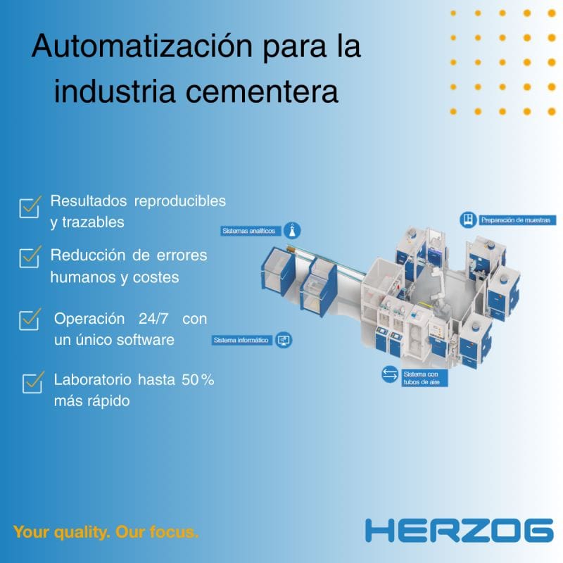 Con los sistemas Herzog, la automatización total mejora la consistencia de los resultados y reduce errores humanos, optimizando tiempos y costos operativos. ¡La innovación tecnológica está al servicio de la industria cementera!